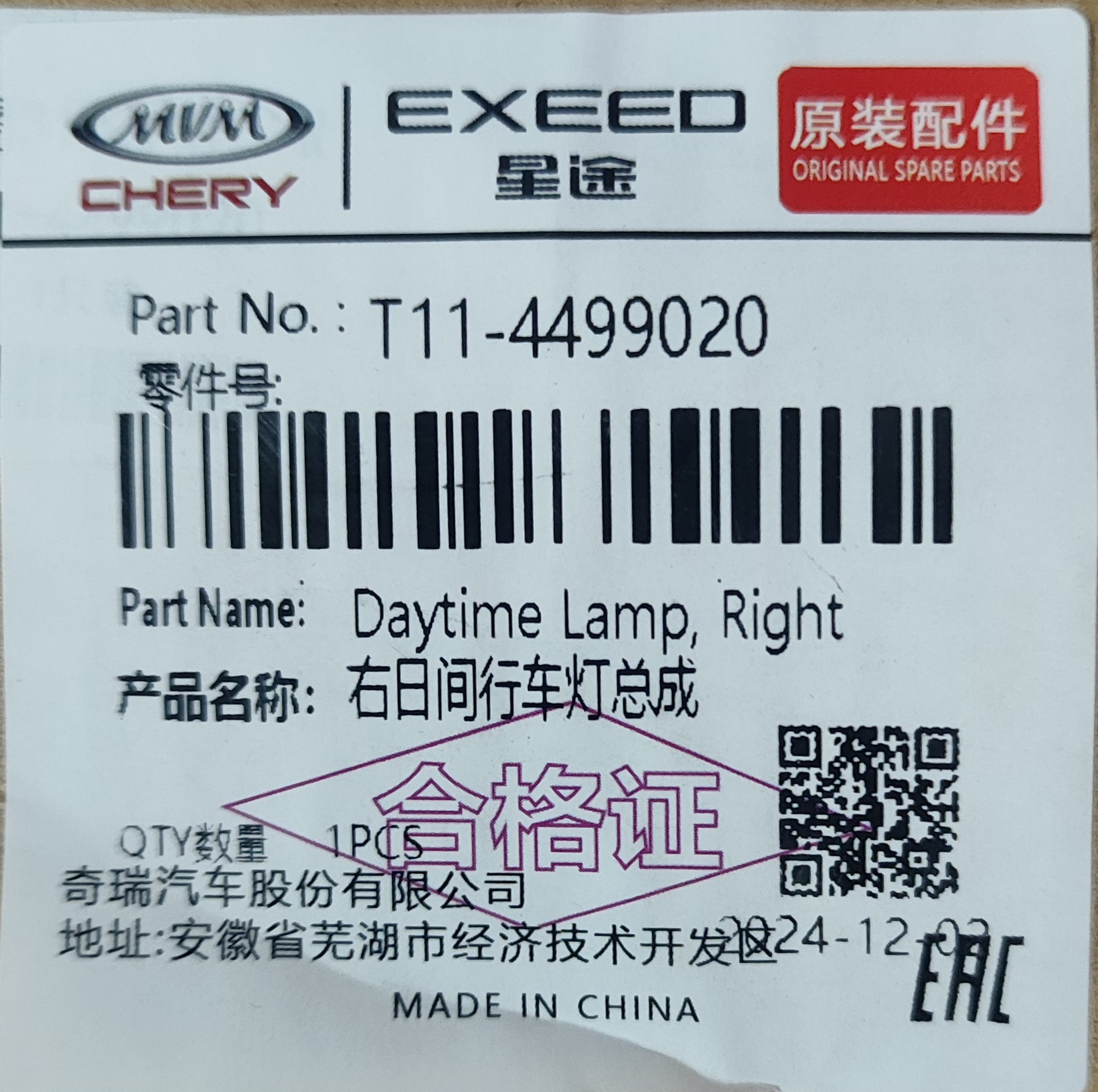دیلایت جلو راست X33S کد فنی : T11-4499020